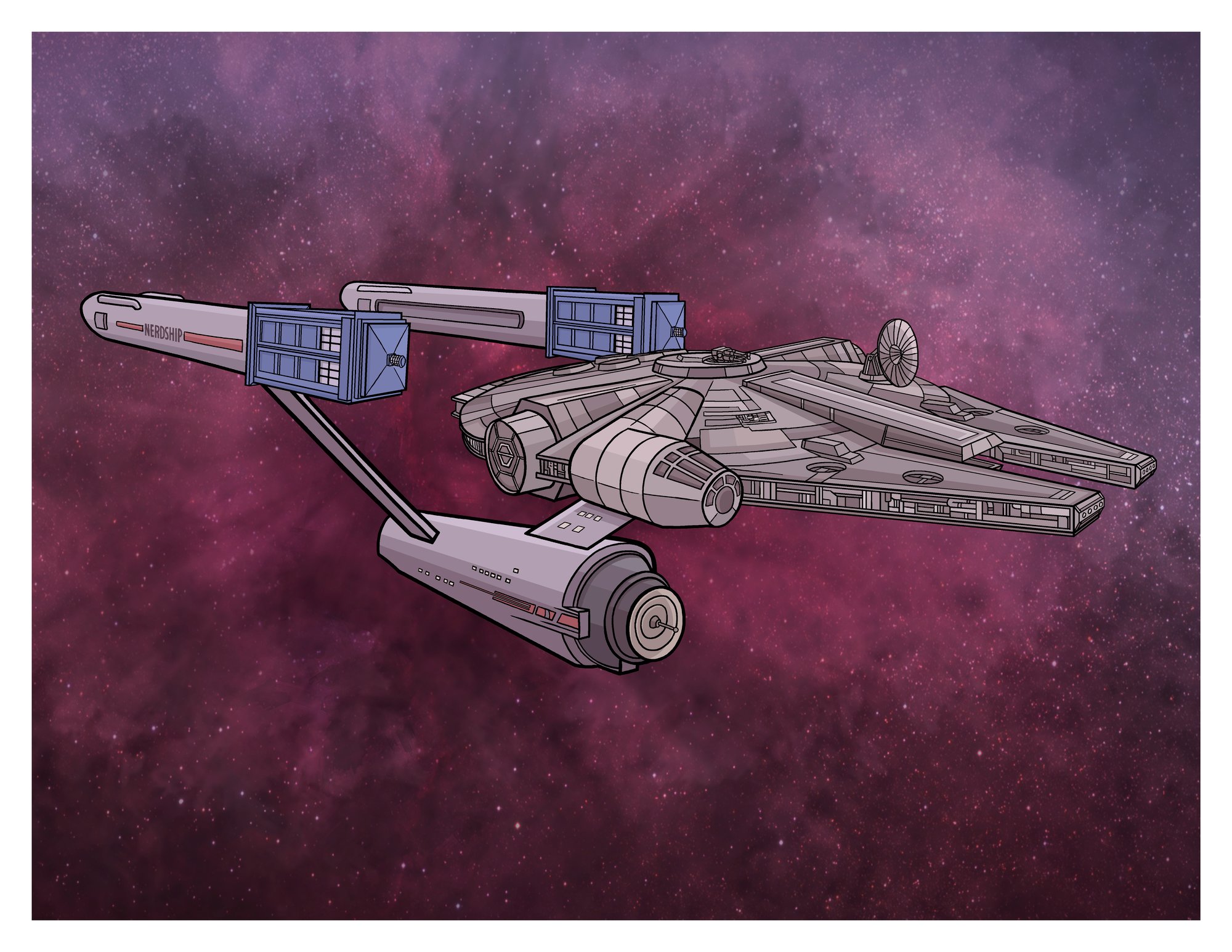8.5 x 11 card stock print by Jason Horn of a nerd spaceship mashup!